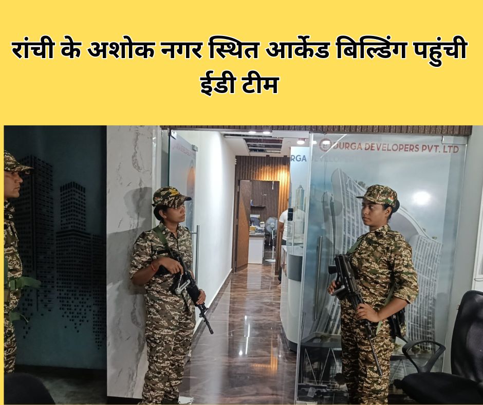 रांची: ईडी की टीम ने अशोक नगर स्थित आर्केड बिल्डिंग में छापा मारा; दुर्गा डेवलपर्स के कार्यालयों में दस्तावेज और कंप्यूटर जांच के लिए बरामदगी जारी