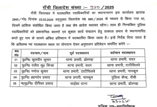 रांची। झारखंड सरकार ने पूर्व मुख्य सचिव एल. खियांग्ते को झारखंड लोक सेवा आयोग (जेपीएससी) का नया अध्यक्ष नियुक्त किया है, जिससे छह महीने से खाली पद को भरने की कवायद पूरी हो गई। राज्यपाल सी.पी. राधाकृष्णन ने गुरुवार को इस नियुक्ति को मंजूरी देते हुए राज्य में भर्ती प्रक्रियाओं...